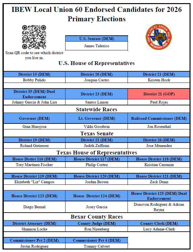 2) IBEW Local 60 expresses Solidarity with San Antonio AFT and San Antonio Alliance in their pursuit of adequate funding for public schools.